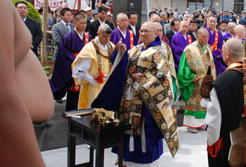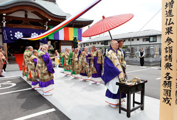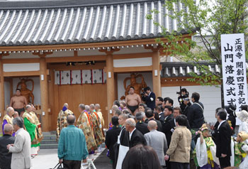 平成21年4月18日、多くの皆様のご尽力により開創400年記念事業山門落慶式を無事、盛会裏に執り行うことができました。まだ若く経験不足の私たちが開創400年という記念の年に、山門建設という大事業を行わせていただけましたのは、関係寺院の皆様、檀家総代、お世話人をはじめとするお檀家さまと地域の方々が温かく見守ってくださり、的確な助言をくだされました賜物と深く感謝しております。今後は常に檀信徒みなさまが安心してお参りいただけるお寺でありますよう精進してまいりたいと思います。今後とも何卒よろしくお願い申し上げます。