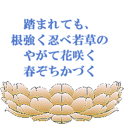 道端に咲いている花は厳しい自然環境の中、長い時間を掛けて咲くものです。人生の度重なる苦難を乗り越えた後の喜びを表した姿のようであります。今、耐え忍ぶ時でありますが、心は常に豊かでいたいと思います。心の中に蒔かれているさとりの種からきれいな花を咲かせるためにも。