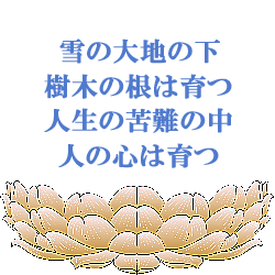 今の日本は大変な時代と言われておりますが、苦しみや悲しみ厳しさから逃げずに乗り越えて人生のすばらしい花を咲かせ実を結び未来の子孫へすばらしい種を残していけるようにみんなで努力いたしましょう。