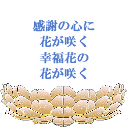 あなたが人にお世話になった時、「ありがとう」という感謝の気持ちを伝えるか「してもらうのが当たり前」という態度をとるかで、大げさかもしれませんが、その後の人生がかわるかもしれません。 また、悪いことや嫌なことがあった時に「誰かのせい」にすると、よけいに腹が立ったり悔しかったり悲しかったりします。悪いことや嫌なことがあった場合「時にはこういうこともある」、「しかたがない」、「この程度で済んでよかった」などと考え、そうしたことも自分が成長するための試練であると思えば、まだ気持ちは楽になります。物事は、受けとめ方や考え方で、幸せにも不幸にも感じます。 人は多くの命をいただきながら、多くの方々にお世話になり日々を送ることができます。どうぞ何事も「感謝」の気持ちでとらえ心にたくさんの幸せの花を咲かせてください。