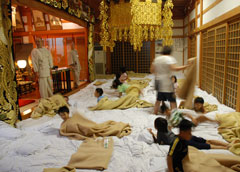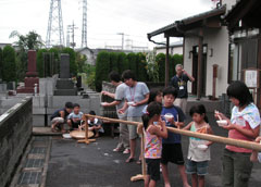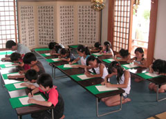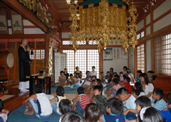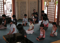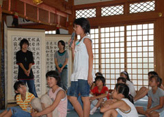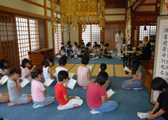 毎年夏休みに(現在は日帰り)体験修業を行い子どもたち(小3〜小6)に写経や座禅、読経、作務(清掃)などお寺の生活を体験してもらっております。 子供道場ギャラリー 2011年度の様子 2012年度の様子